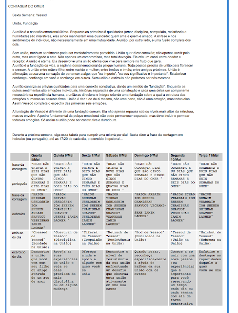 Contagem e Exercício do Ômer para a sexta semana de Sefirat HaÔmer