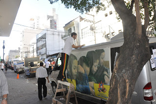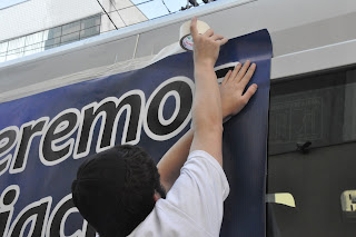 Foram fixados em torno de 170 cartazes em locais estratégicos e nas vans e combis que iriam compor a carreta de 60 veículos transformados em "Mitvá Tanks".