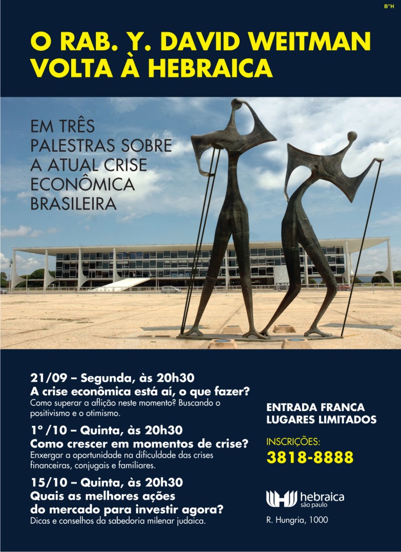 Participe do novo ciclo de palestras sobre a atual crise econômica brasileira e receba valiosas dicas e conselhos da sabedoria milenar judaica.