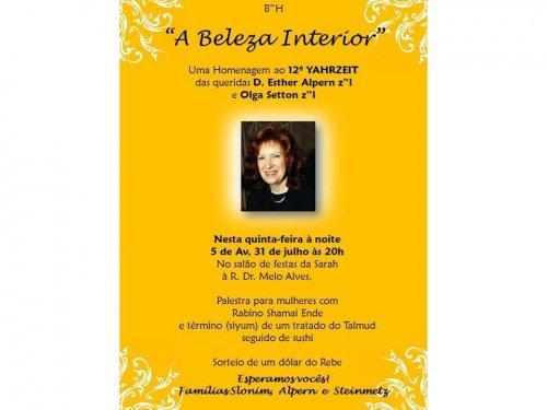Oferecido pelas famílias Slonim, Steinmetz e Alpern, exclusivo para Público Feminino da Comunidade Judaica.