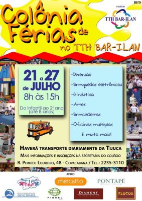 Colônia de férias para crianças no RIo de Janeiro no Colégio TTH Bar Ilan.