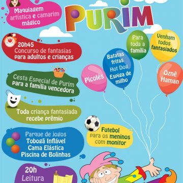 Grande e animada festa de Purim do Tsivot Hashem no Beit Chabad Central em São Paulo.