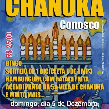 Festa de Chanucá em São José dos Campos com bingo, Sorteios, Lanche americano Kasher, acendimento da quinta vela de chanuká e muito mais.