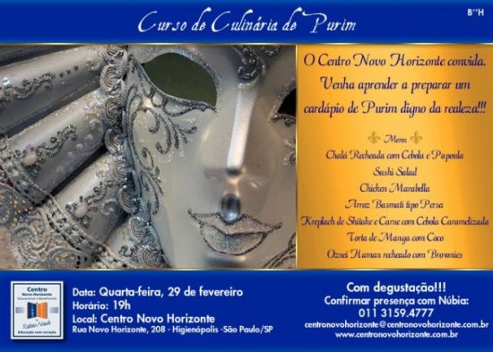 Curso de Culinária no Centro Judaico Novo Horizonte com temática de Purim e com direito a degustação.