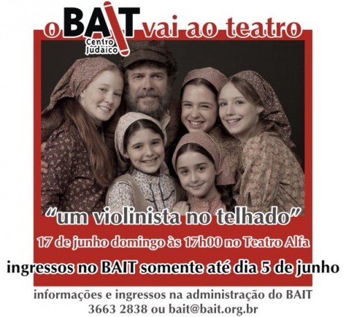Venha assistir a consagrada peça "Um Violinista no Telhado" com o BAIT. Ingressos à venda na Sinagoga até 5 de Junho.