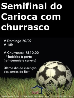 Último dia de inscrições dos Cursos Bait - Semifinal do Carioca co Currasco Kasher para Jovens de 18 a 35 anos no Espaço Jovem Bait - Rio de Janeiro