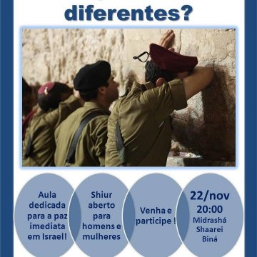 Em uma época de grande dificuldade em Eretz Israel, será dedicado um shiur pela Paz imediata em nossa "terrinha". Por Rony Dayan, na Midrashá Shaarei Biná, para toda a Comunidade (homens e mulheres).