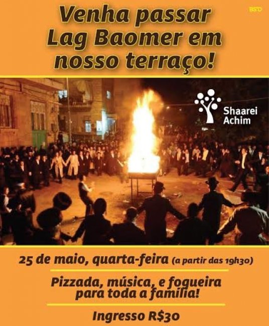 A Shaarei Achim Perdizes, sob liderança do R. Chaim Dovid Rubinsztajn, convida para Pizzada de Lag Baomer, com Fogueira, Música e muita alegria.