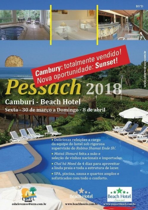 Devido à grande procura e à ocupação máxima do Cambury Beach Park, a Eshel Eventos agora apresenta Pessach no Sunset Beach Park.