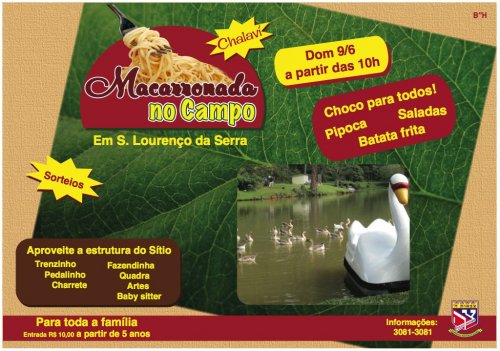 O Tsivot Hashem convida toda a Comunidade Judaica para mais um domingo no Campo, com toda a infra-estrutura do Sítio Felicidade.