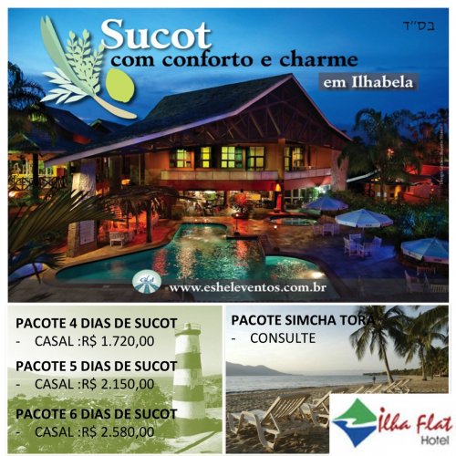 Evento especial para a Comunidade Judaica em Ilhabela com supervisão Kasher do Rabino Shamai Ende Shlita, Carnes Halak Beit Yossef (opção de carne 770) e Lácteos Chalav Israel, um super Hotel, Flat e Centro de Convenções foi fechado exclusivamente para o Sucot 5771 da Comunidade Judaica na ilha de Ilhabela onde uma linda Sucá será construida.